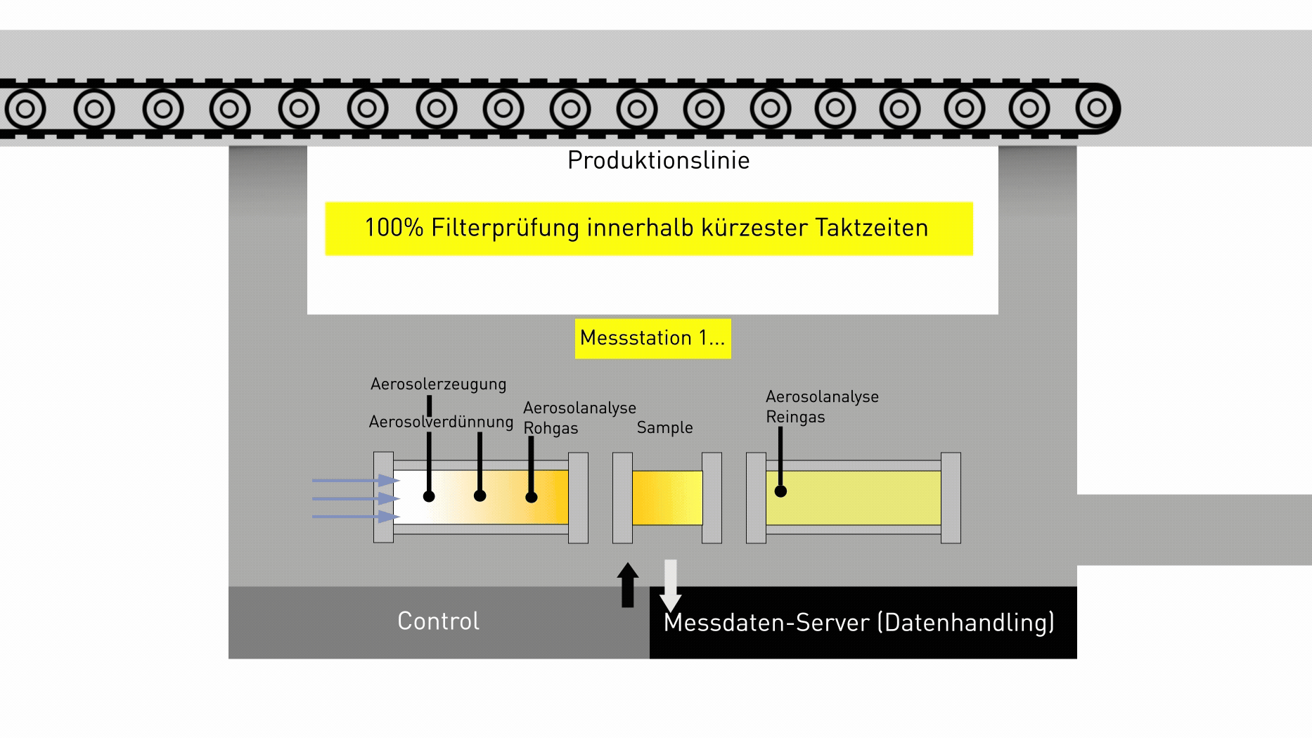 See the operating principle on the right to get an overview of how fully automated inline and online filter testing works with a Topas test system.