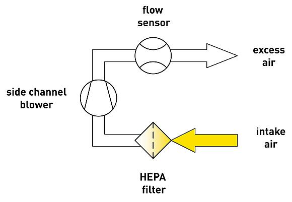 The Regulated Flow Unit RFU 564 was developed to provide variable adjustable and time-stable air flow rates for both under pressure (intake mode) and over pressure operation (supply mode).